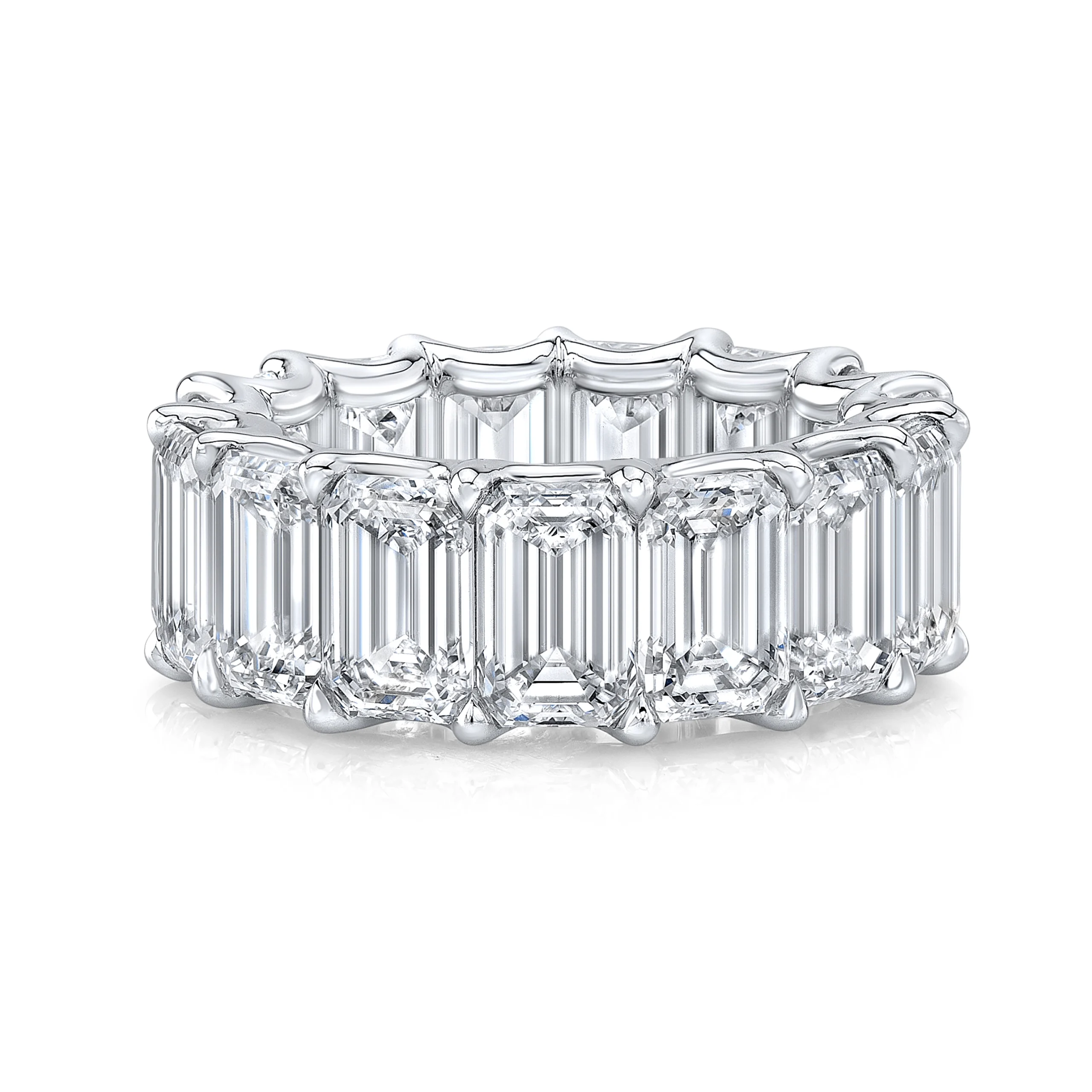 Celebrate timeless elegance with the Emerald Eternity Band, featuring a stunning 15.29 ct of vibrant emeralds set in luxurious 18K white gold. This band symbolizes everlasting beauty and commitment, with each emerald perfectly matched to create a continuous circle of radiant green brilliance.