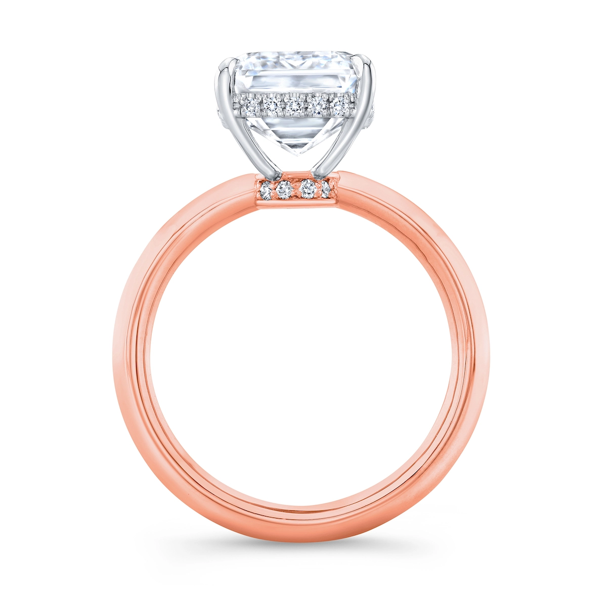 Our classic solitaire engagement ring with a hidden halo combines the timeless elegance of a solitaire design with a subtle touch of added sparkle.