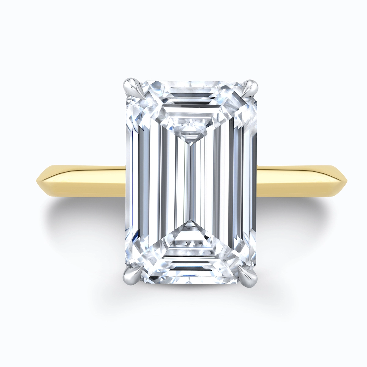 This design merges the traditional appeal of a solitaire ring with a modern twist, providing a unique and elegant engagement ring option.